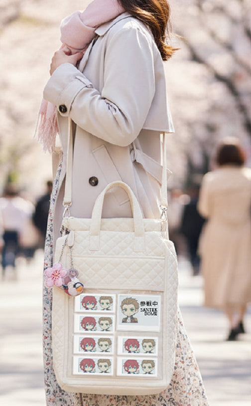 推し活バッグのインナー展示、ギフトボックスのメッセージカード、ショーケース内の商品説明カード、パッケージ同梱の案内として。