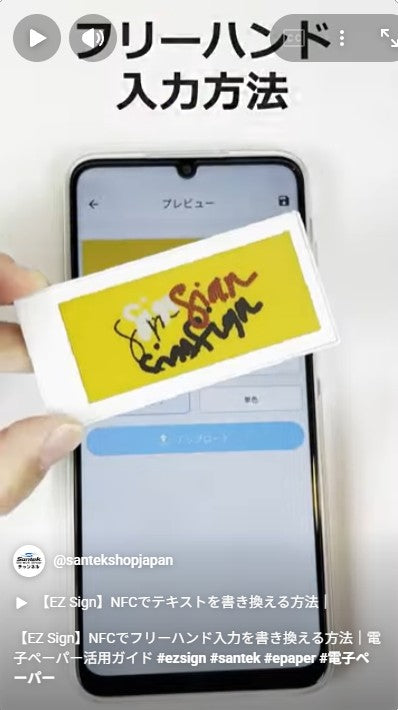 A. EZ Signは「電子ペーパー+NFC通信/給電」の仕組みです。 書き換えの瞬間だけスマートフォンやNFCリーダーから給電され、表示更新後は電力を使わずに表示を保持します。 そのため、電池交換・充電・配線工事は不要です。