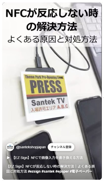 金属面や強い磁石の近くではNFC通信が不安定になることがあります。 書き換えの際は一度取り外す、または金属面から少し離した位置で更新してください。